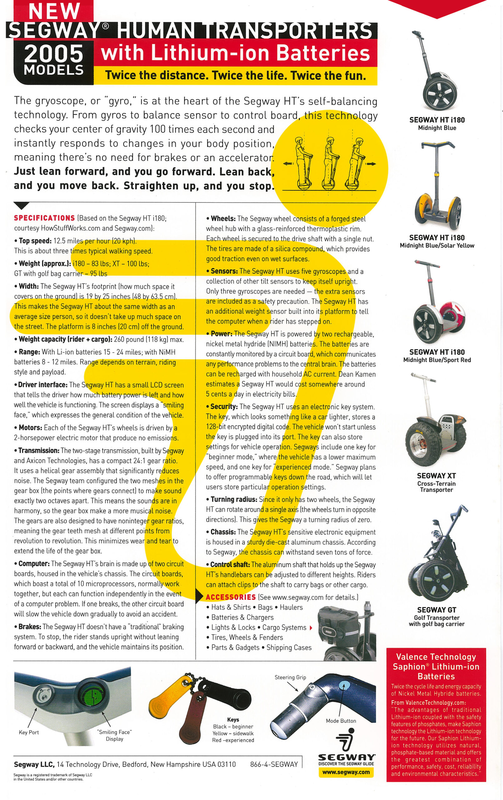 Dean Kamen has truly invented something special. A slight tip forward or back and side to side propels the battery-powered machine seemingly effortlessly in that direction as if controlled by thought alone. Drank the Kool-aid. Bought an early model and made several tabletop displays for Segway of Westbrook.